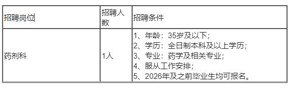 根据医院业务发展需求,现需招聘药剂科药师1人,具体招聘条件如下: