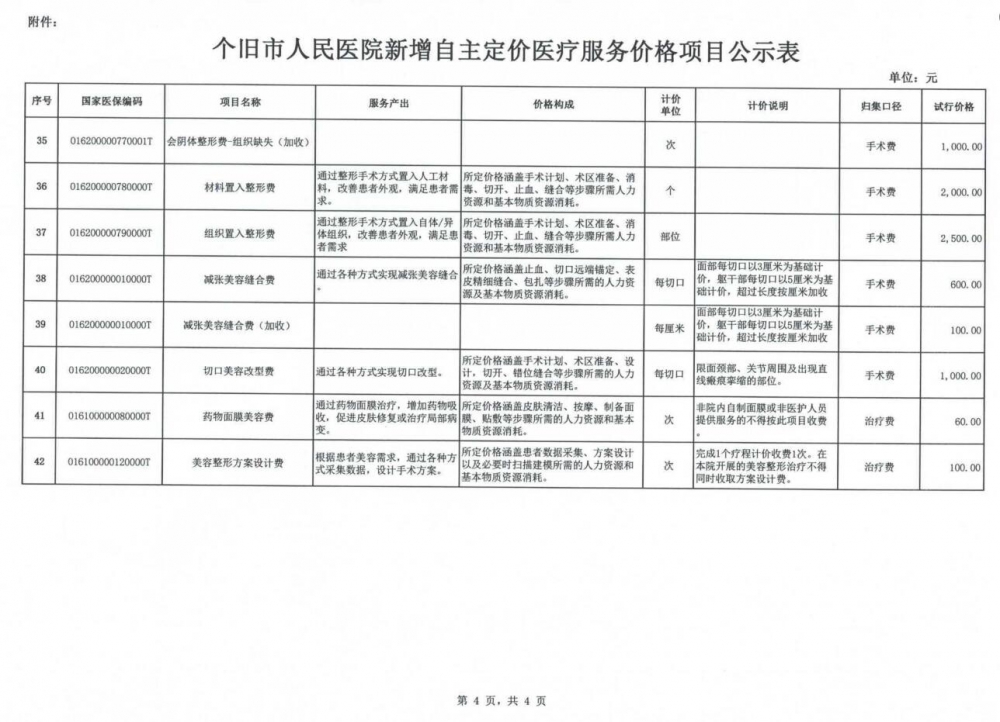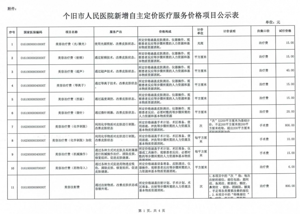 个旧市人民医院关于新增自主定价医疗服务价格项目公示-个旧市人民医院
